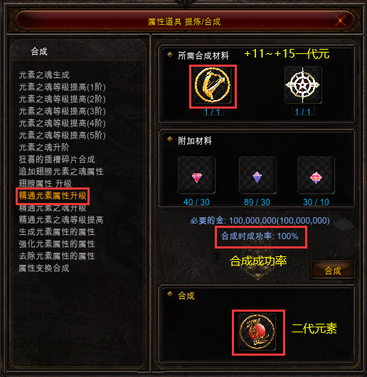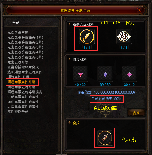 精通元素之魂升阶合成(4阶)